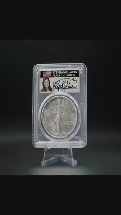 This is where investment meets perfection, endorsed by the pinnacle of the industry. The 1986 Silver Eagle is revered as the coin that started it all for modern silver investors. This specimen takes that prestige to the highest level. Certified as a flawless MS70 by PCGS, its quality is unquestionable. The story is then elevated to an unprecedented level by the signature of Stephanie Sabin, the former President of PCGS. This is a powerful trifecta of collectability: a perfect bullion coin from a historic year, signed by the head of the company that graded it.