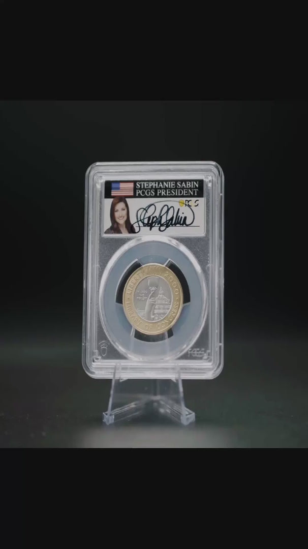 This is where extreme rarity meets absolute perfection, endorsed by the pinnacle of the industry. While the bimetallic nature of the Library of Congress coin is historic, the Mint State version is legendary for its scarcity. With a mintage of just 7,261, it is a monumental prize. This specimen takes that legacy to its ultimate conclusion. Certified as a flawless MS70 by PCGS, its quality is miraculous. This extreme rarity is then crowned by the signature of Stephanie Sabin, former President of PCGS, creating an unparalleled trifecta of rarity, innovation, and provenance.