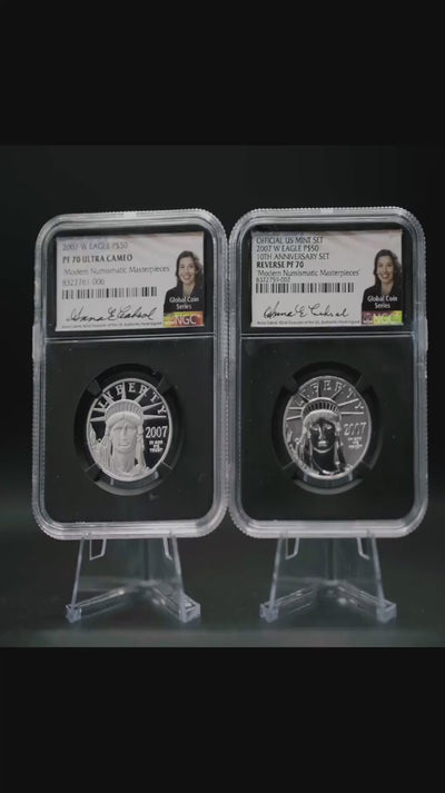 2007 2PC $50 American Platinum Eagle Set – NGC PF70 & Reverse PF70 "Modern Numismatic Masterpieces" Anna Cabral Autograph