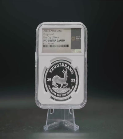Since 1967, the Krugerrand has dominated the precious metals market. The 2023 1 oz. Silver Proof Krugerrand continues this proud tradition, offering collectors a silver version of the iconic design. This specimen is among the best of the best from that year's mintage. As a "First Day of Issue" coin graded PF70 Ultra Cameo by NGC, it represents the small fraction of coins that combine perfect condition with a coveted, time-sensitive pedigree.