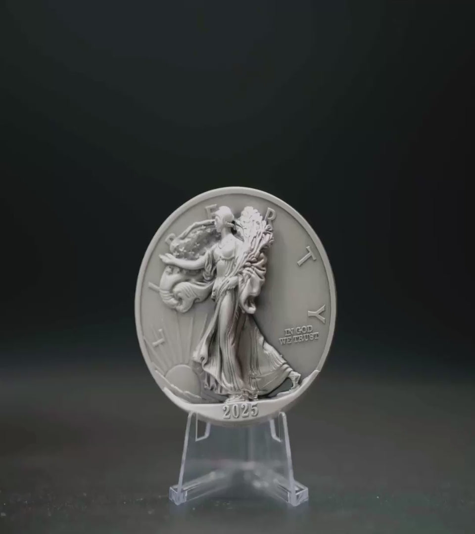 Launched in 2025, the Coming to Life™ Collection reimagines iconic American coin designs in stunning 3D, and the Type 2 Silver Eagle marks its debut with a tribute to the modern eagle reverse. Released as a limited-edition commemorative, it showcases the evolution of the Silver Eagle series through patent-pending Beyond Relief™ technology. With a mintage of only 2,025, it sold out rapidly among discerning collectors. The Beyond Relief™ process, requiring collaboration with minting experts and specialized firms, transcends high-relief techniques to deliver intricate, dimensional details, celebrating the Type 2 eagle’s majestic form with unprecedented clarity and depth.