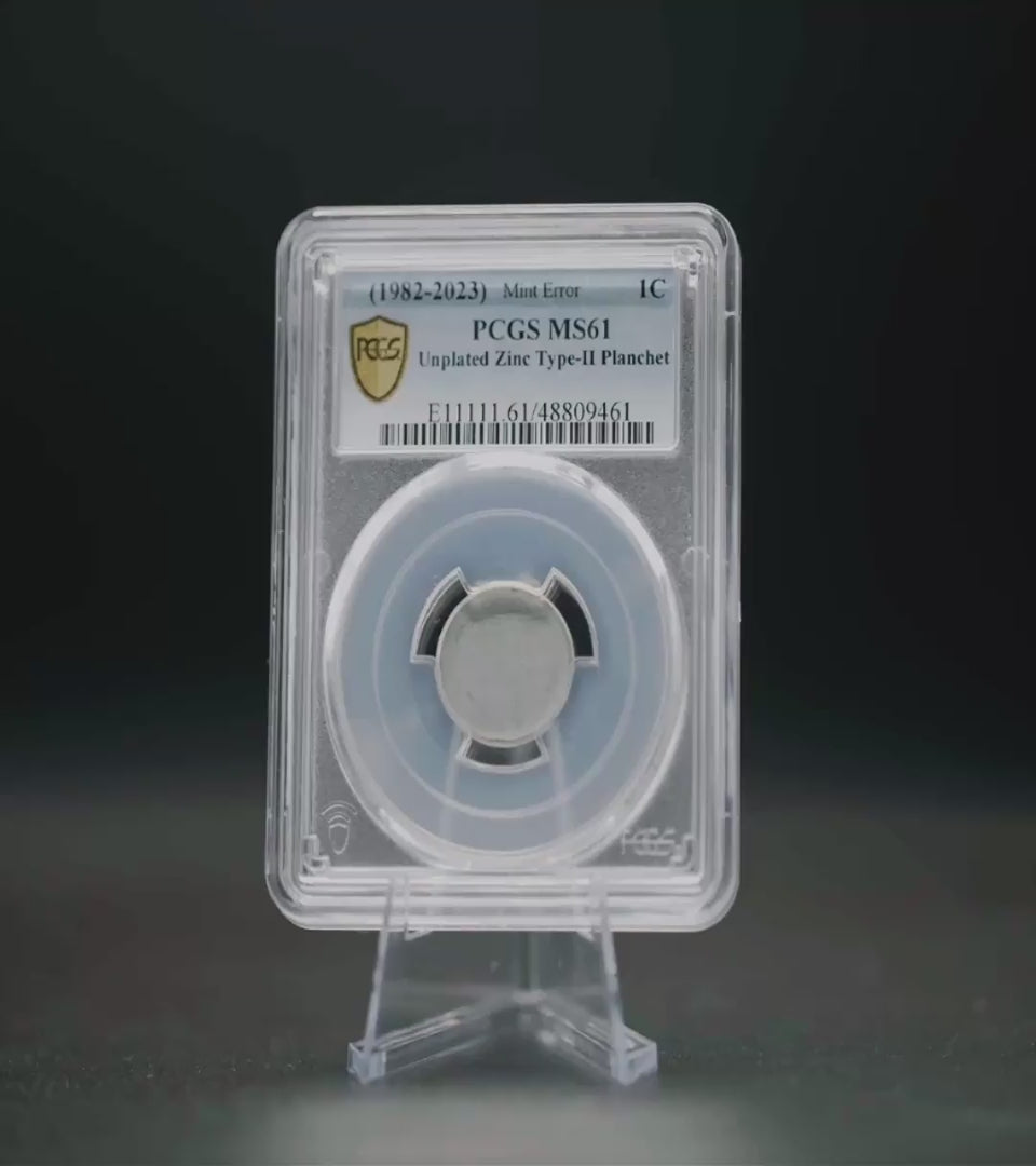 Elevate your collection with an object that should not exist: a Type-II Unplated Zinc Lincoln Cent Planchet. Since mid-1982, every Lincoln Cent struck for circulation is composed of a zinc core electroplated with a thin layer of pure copper. This piece is a "ghost" of a penny—a raw zinc blank that completely bypassed the copper-plating bath, yet still made it through the upsetting mill (which creates the raised rim) before escaping the U.S. Mint. It is a naked planchet, exposing the silvery-gray zinc that is meant to be hidden beneath a copper skin. Certified by PCGS in Mint State 61 condition, this is a tangible and fascinating piece of the modern minting story.