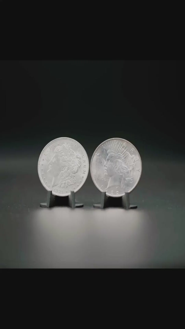 A Historic 'Passing the Torch' Set: This iconic two-coin set captures a pivotal moment in U.S. history—the transition from the classic Morgan Silver Dollar to the modern Peace Silver Dollar. It pairs the final year of the "Coin of the Old West" with the first full production year of the "Coin of the Roaring Twenties."